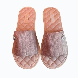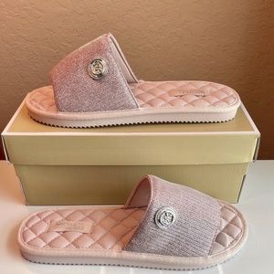 Michael Kors Womens Size 8 Janis Pink Sports MK Logo Slides Sandals