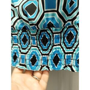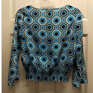 Michael Kors Women's Size Small Petite Blue Funky Retro Geometric Pattern Top