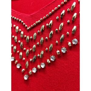 Michael Kors Womens Size XL Red Long Sleeve Jeweled Rhinestone Stretch Tunic Top