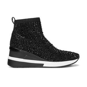 Shining stones add inspired sparkle to the sporty sock silhouette of the Michael Michael Kors Skyler sneaker booties.