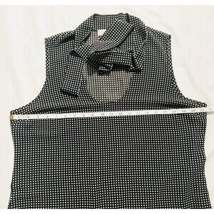 Michael Kors Women's Sleeveless Checkered Tie-Neck Blouse Size L, Black/White