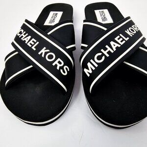 Michael Kors Women's Sparrow Black & White Criss Cross Slide Sandals Size 8M