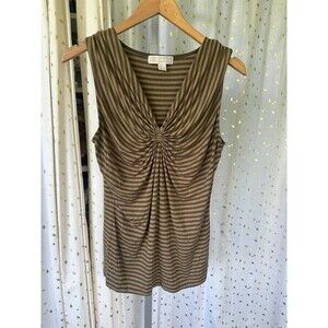 Michael Kors Women's Stripe Ruched Chest Sleeveless Flattering Blouse M