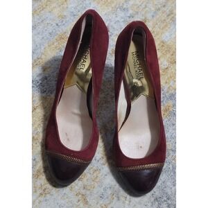 Michael Kors Women's Suede Leather Red Burgundy Heels Pumps Size 8 M