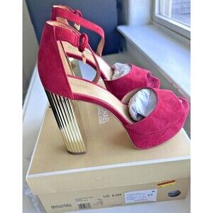 Michael Kors Women's Suede Porter Platform Sandals open Toe Red Crimson size 6.5