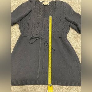 Michael Kors Black Cotton Angora Pointelle Weave Tie Waist Cable Knit Sweater