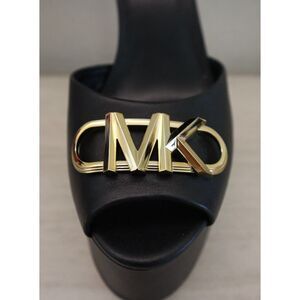 Michael Kors Women's Sz 8M Black Leather Martina 5" Peep-Toe Platform Pumps