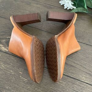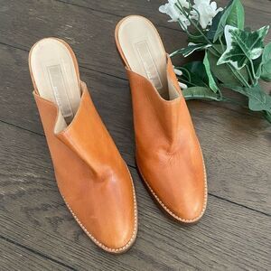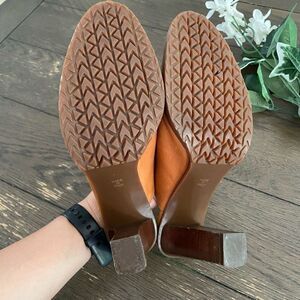 Michael Kors Womens Tan Slip On Leather Mules Size 7.5 Stack High Heel