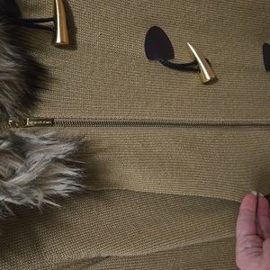Michael Kors Women's Tan Sweater Coat with Faux Fur Hood Cabincore Cozy Wool