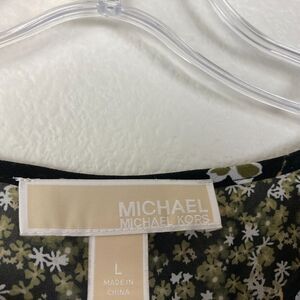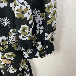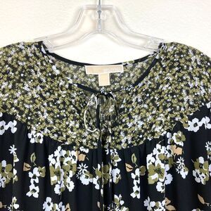 Michael Kors Women's Tiered Dress Size L Black Floral Chiffon Layered Tie Neck