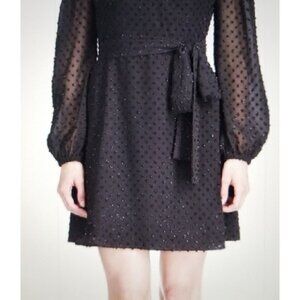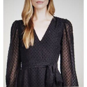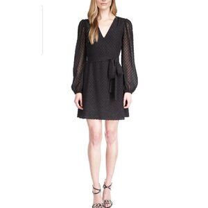 Michael Kors Women's Tonal Swiss Dot Wrap Dress Black Size Petite Small