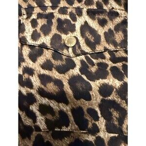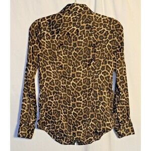 Michael Kors Womens Top Full Zip Roll Tab Sleeve Leopard Animal Print Sz XS