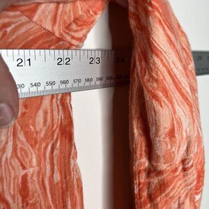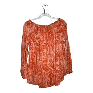 Michael Kors Womens Top Large Orange Swirls Gauzy Boat Neck Long Sleeve