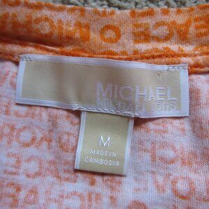 Michael Kors Womens T-shirt Size M Orange Love Peace Button Shoulder