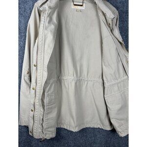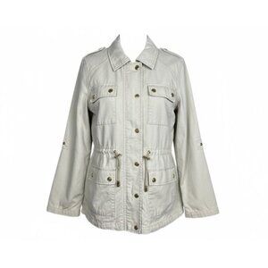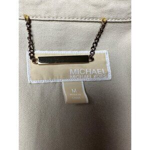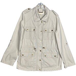 Michael Kors Womens Utility Jacket Medium Beige Tan Gold Pockets Snap Zip Front