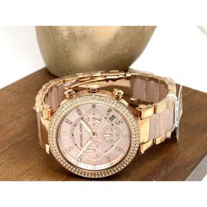 Michael Kors Women's Watch MK5896 Quartz Chronograph 39mm Rose Gold Steel Plastic Band $295 (AY4832Y)