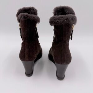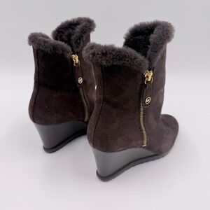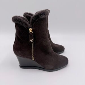 Michael Kors Women's Whitaker Brown Suede Wedge Ankle Boots 7M Shearling Lined