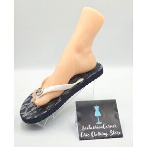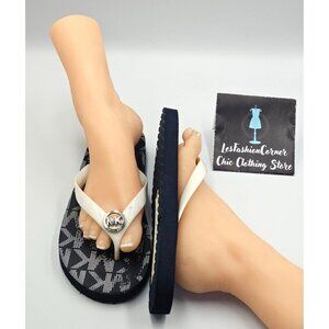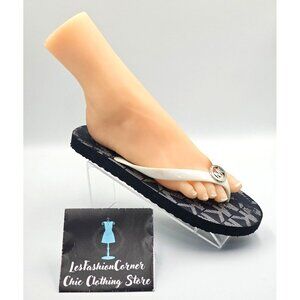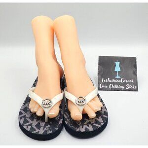 Michael Kors Women's White Navy Jet Set Rubber Flip Flops Sandals Sz 11 2527
