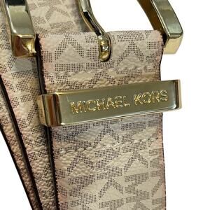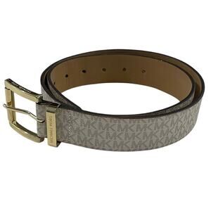 **The Michael Kors Women's White And Khaki Belt With MK Logo Throughout is in good used condition, there are no holes or tears. Please take a few moments to review the photos attached.