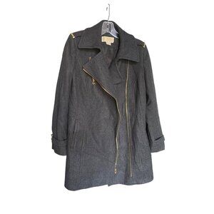 Michael Kors Womens Wool-Blend Charcoal Gray Pea Zip Coat Size 6