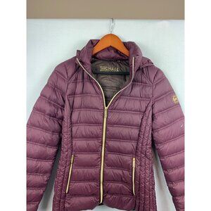 Michael Kors Womens XS Packable Down Puffer Jacket Nylon Plum