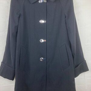 Michael Kors Womens XS Trench Coat Jacket Black Silver Clasp Buttons Pockets Designer