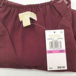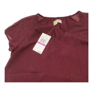 Michael Kors Women’s XXS Ruby Red Sheer Flutter Sleeve Lined Top Blouse NWT