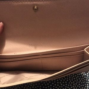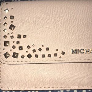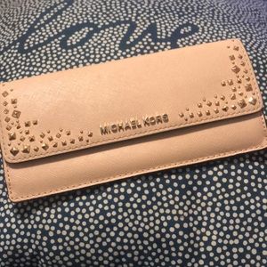 Michael Kors Wallet, Pale pink with Gold studs super clean as seen in pics, 8 credit card slots,1 large bill insert and the back coin slot is also clean