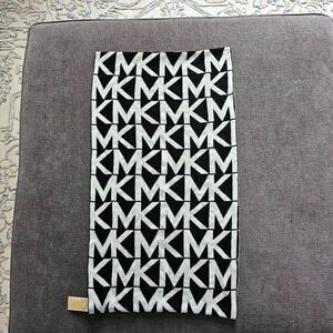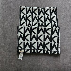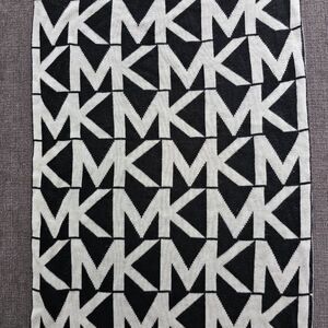 Michael Kors Women's Black & White Repeated MK Logo Knit Scarf