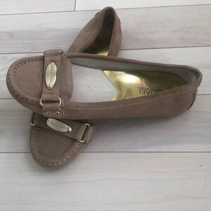 Michael Kors Women's Buckle Logo Suede Mocassin Flats Shoes Beige Tan Size 6M