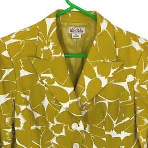 Michael Kors Womens Floral Peak Lapel Silk Blend Blazer Jacket Lime Green Sz 14