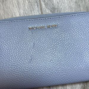 Michael Kors Womens Pale Ocean Blue Pebbled Continental Leather Wristlet Wallet