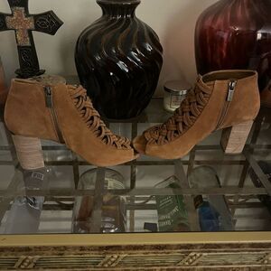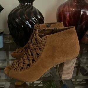 Step out in style with these chic tan woven open-toe shoes. Perfect for any occasion, they offer both comfort and elegance.