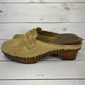 Michael Kors Wooden Clogs Womens Size 6 B Chestnut Tan Suede Made In Italy