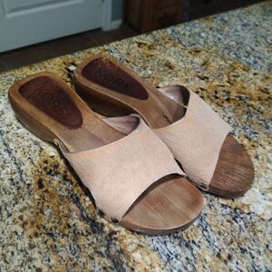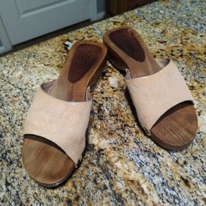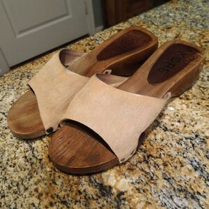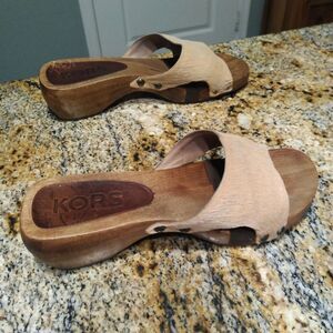 Michael Kors Wooden Slip On Sandals Leather Pony Hair Clogs Heels Women's Sz 7M