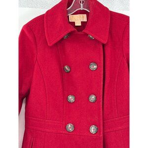 Michael Kors Wool Blend Womens Red Double-Breasted Peacoat M