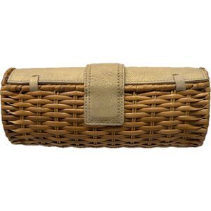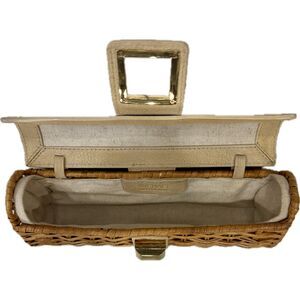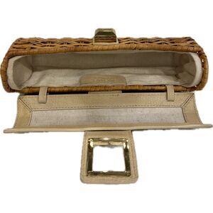 Michael Kors Woven Rattan Clutch with Gold Geometric Clasp – light gold leather