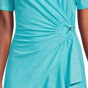 Michael Kors Wrap Dress Eyelet Dress Surplice V-Neck Short Flutter Sleeve Ring