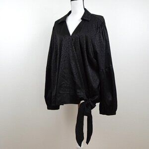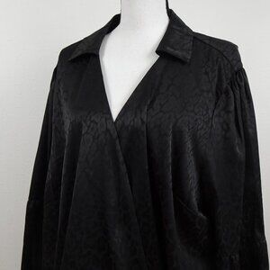 Michael Kors Wrap Top Women's Plus Size 3X Black Cheetah Print Long Sleeve