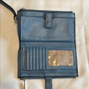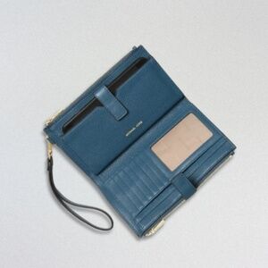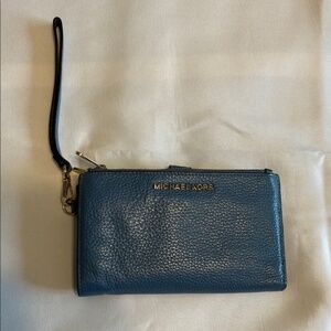 #MichaelKorsWristlet #JetSetTravel #LeatherWristlet #BlueWallet #MKAccessories