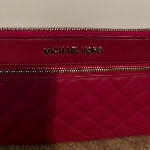 Michael Kors Wristlet Large Quilted Dark Pink Leather Zip “Sophie” AV-1405