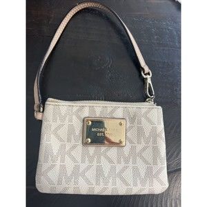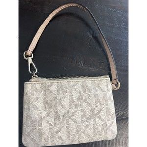 Michael Kors Wristlet Tan/Beige AV-1410 32T3GJSW1B Ivory MK Signature Leather