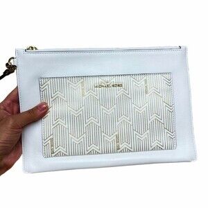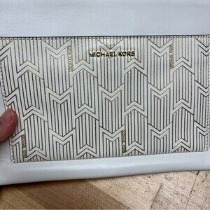 Michael Kors Wristlet in Gold and White Leather NWOT