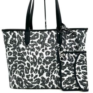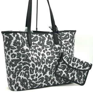 Michael Kors XL East West Tote Bag Leopard Print Black Multi