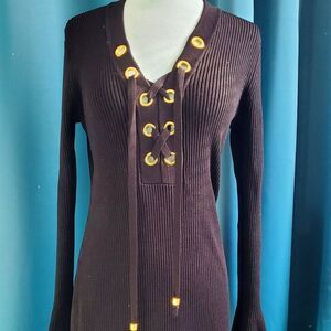🖤Michael Kors XL Ribbed Lace-Up Black & Gold Sweater Dress - Bell Sleeves 🖤