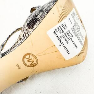 Michael Kor unworn, sample quality shoes, Metallic silver snake patterned 5" heel