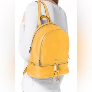 Stylish and vibrant, the Michael Kors Yellow Backpack is perfect for any occasion. Crafted with attention to detail, this bag adds a pop of color to your outfit. Bag does have slight signs of wear. See pictures of corners etc. is still in great shape.