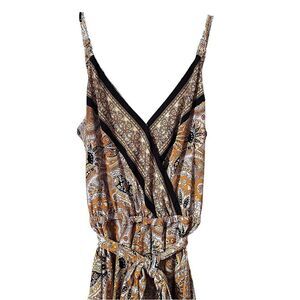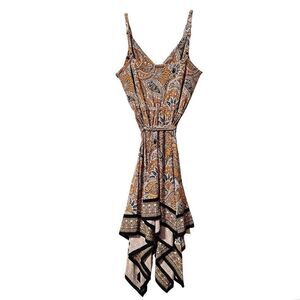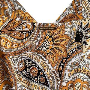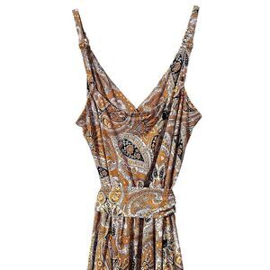 Michael Kors Yellow Black Paisley Sleeveless V Neck Dress Asymmetric Hem Size M