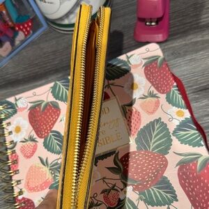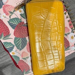Chic yellow wallet with croc-embossed design. Perfect for stylish outings.