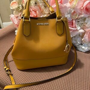 Stylish and vibrant, this Michael Kors handbag in yellow is perfect for any occasion. Elevate your outfit with this chic accessory.